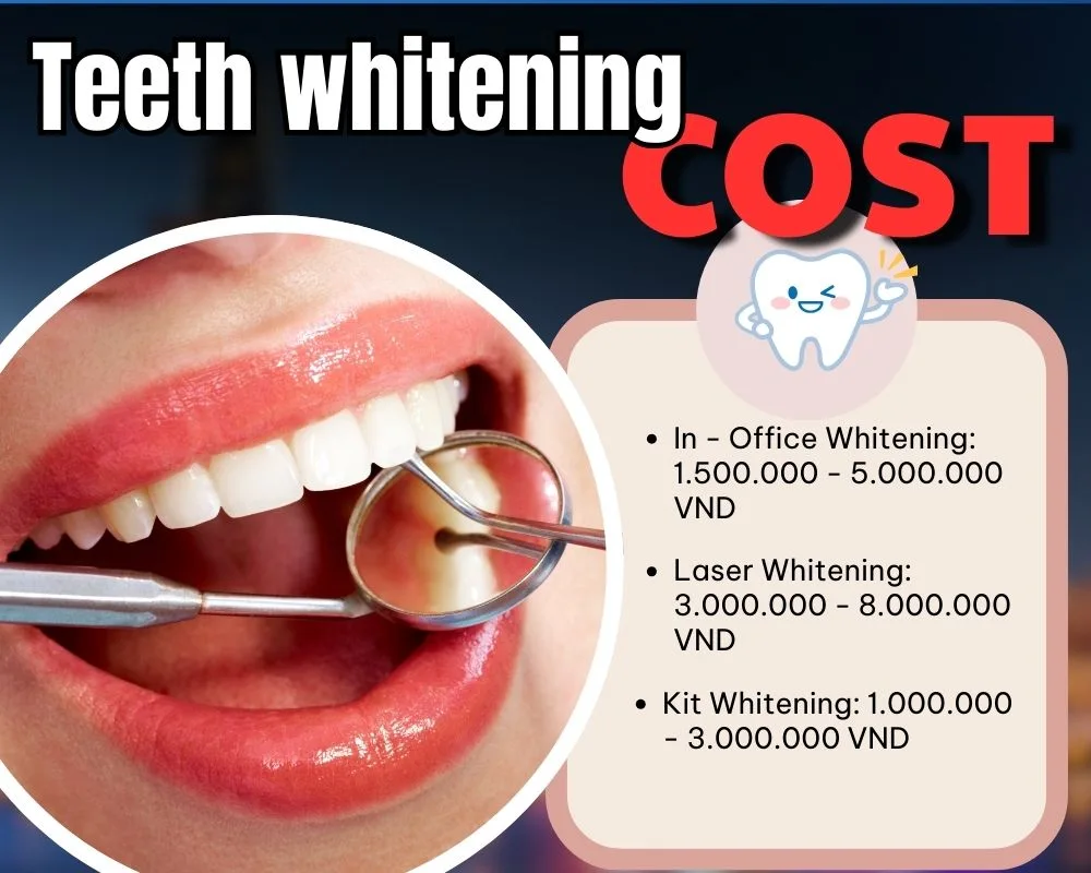 - In-office whitening: 1,500,000 – 5,000,000 VND
